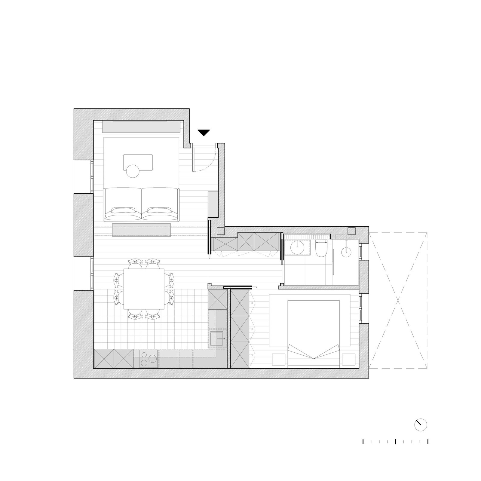 El punto de partida era una vivienda con una distribución rígida y poco conectada con la forma actual de habitar. La intervención se centró en liberar el espacio, potenciar la entrada de luz natural y crear estancias más abiertas, flexibles y coherentes entre sí. Cada decisión responde a una manera de vivir: cocinar mientras entra el sol de la tarde, trabajar cerca de la ventana, esconder lo cotidiano para que lo importante respire.